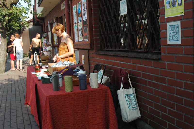 Przedstawiłyśmy się (Morze Herbaty), opowiedziałyśmy (o herbacie chińskiej), zaparzyłyśmy (herbatę gongfu cha) i poczęstowałyśmy (herbatą turkusową). A więc, jak zawsze, ale inaczej, bo w pierwszej Morza przestrzeni. Sezonowej, kilkudniowej, ale naszej, nami wypełnionej. Na noc wszystko zostało zdjęte, zapakowane i zwinięte , ale dnia następnego dnia wróciło na swoje miejsce pod wiatą. I czajniczki i kubki i puszki i stoły i krzesła i proporce i zdjęcia… I trzeciego dnia herbaciarnia znów rozłożyła się. I znów przedstawiłyśmy się, opowiedziałyśmy, zaparzyłyśmy, poczęstowałyśmy i sprzedałyśmy. Czwartego dnia ruszyłyśmy na ulicę.