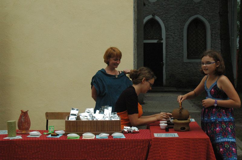 Wysłuchałyśmy pięciu kazań, pięć razy herbata została poświęcona i z ambony zachwalona. Herbat znacznie ubyło a załogi przybyło – dwie początkujące herbaciarki awansowały na asystentki. Poprzedniego dnia patrzyły i smakowały, teraz już parzyły i częstowały: Wiosną Malachitowego Ślimaka, Srebrnymi Igłami Żółtej Góry, Pięknością Wschodu. Zostały z zestawem podróżnym gongfu cha i herbatami i ćwiczą na przyszły sezon.