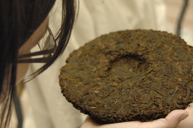 Pu'er prasowany w formie bing cha - "herbaty ciasteczkowej"